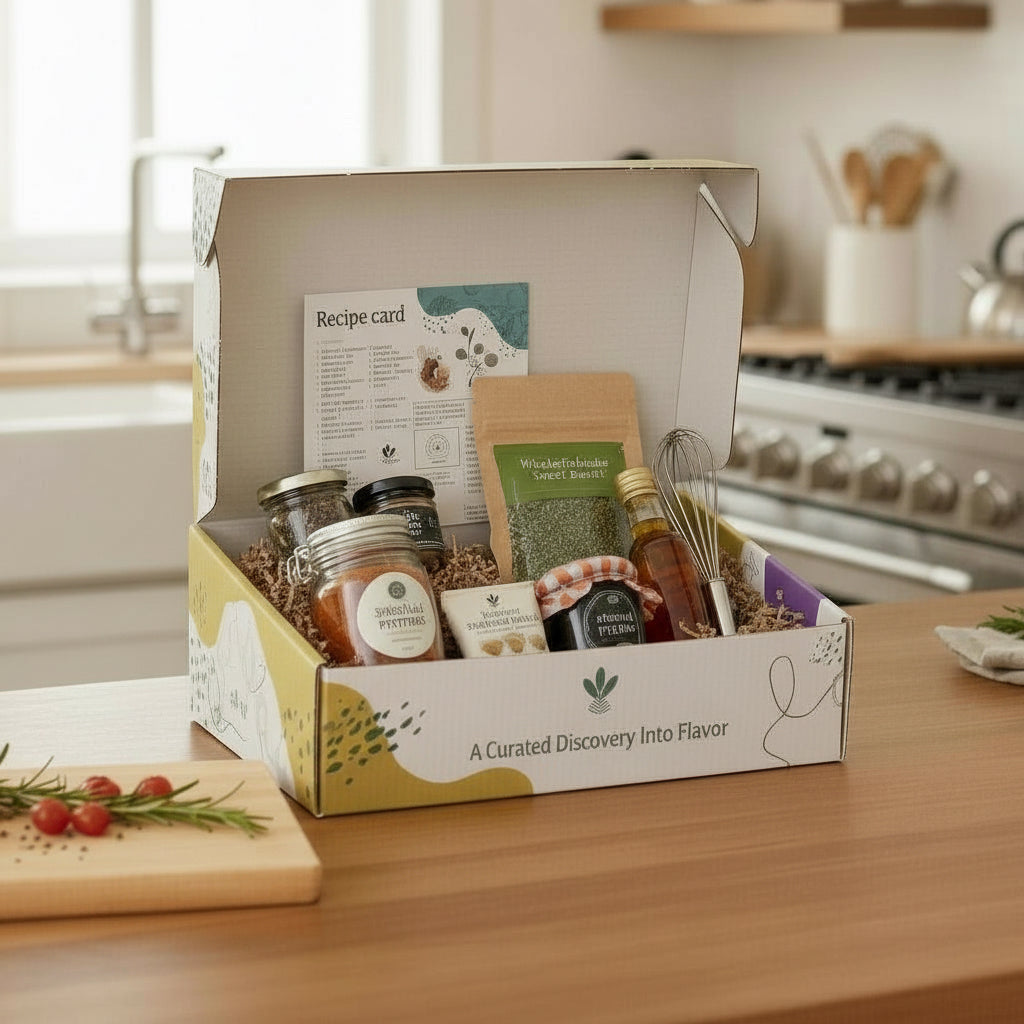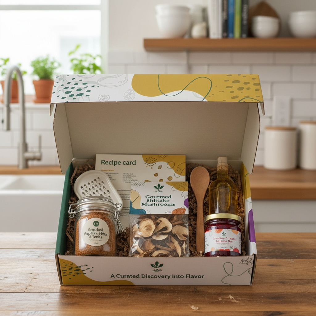 Depending on the selected tier, boxes include between 4–6 curated spices, sauces, treats and kitchen tools - plus a recipe card & tasting notes highlighting an item.
